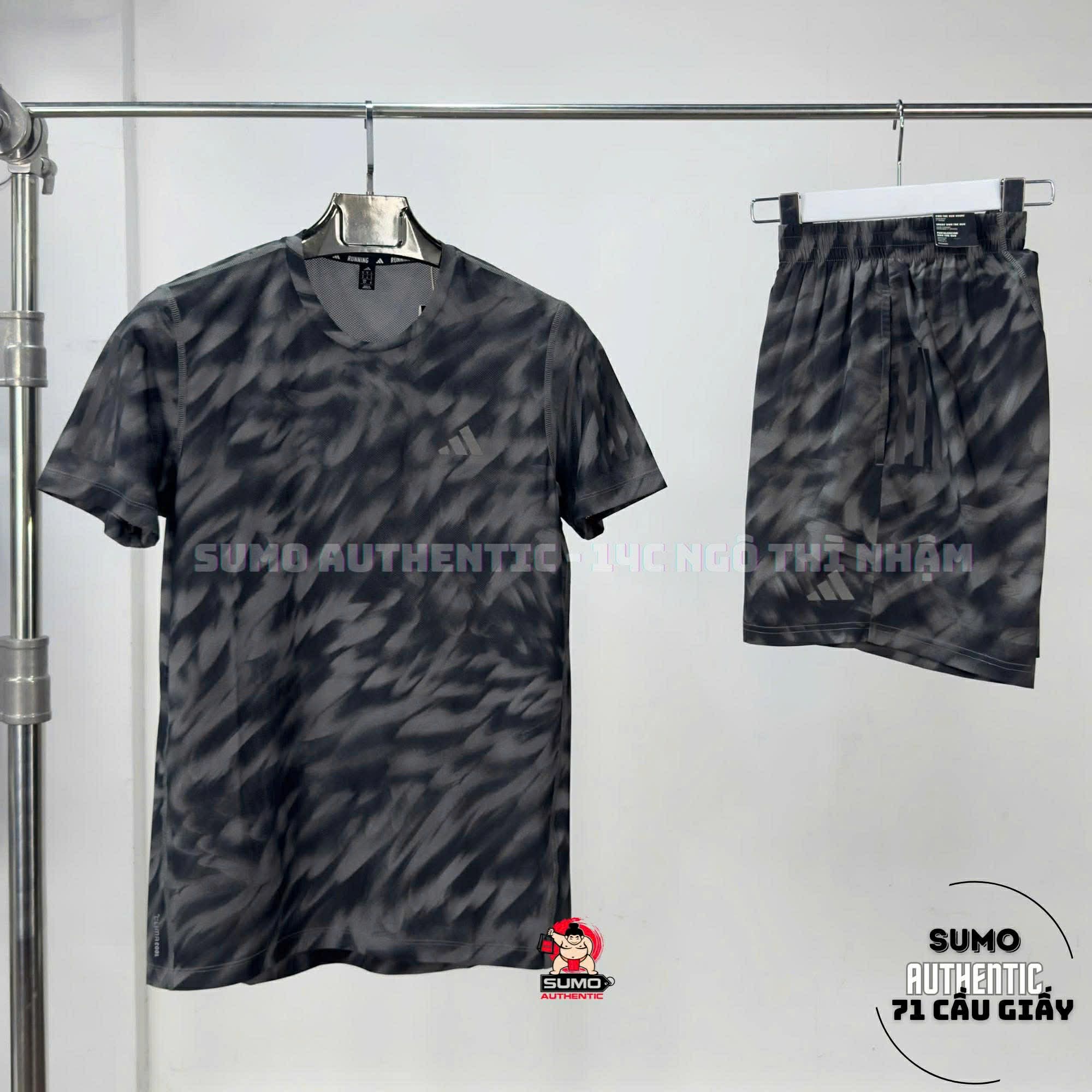 Quần Thể Thao Chính Hãng Adidas Own The Run Allover Men's Running Shorts - màu Đen Xám JN9872